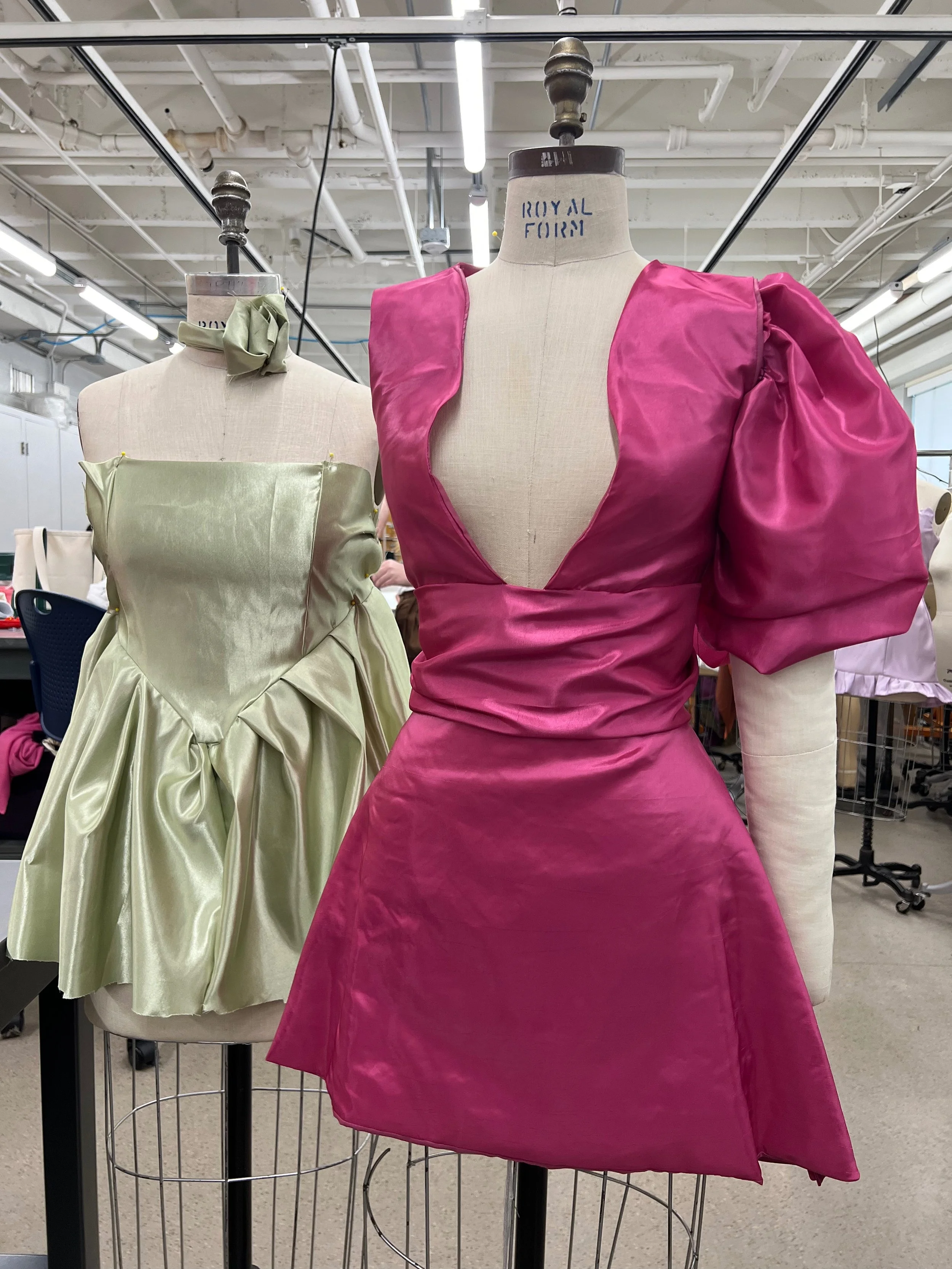 Once we measured our models we made skirt, bodice, and sleeve patterns depending on what designs we were making. For my first design I did a puff sleeve and mini dress with a low cut front. My second design is a drop waist with ruffled skirt and strapless top.