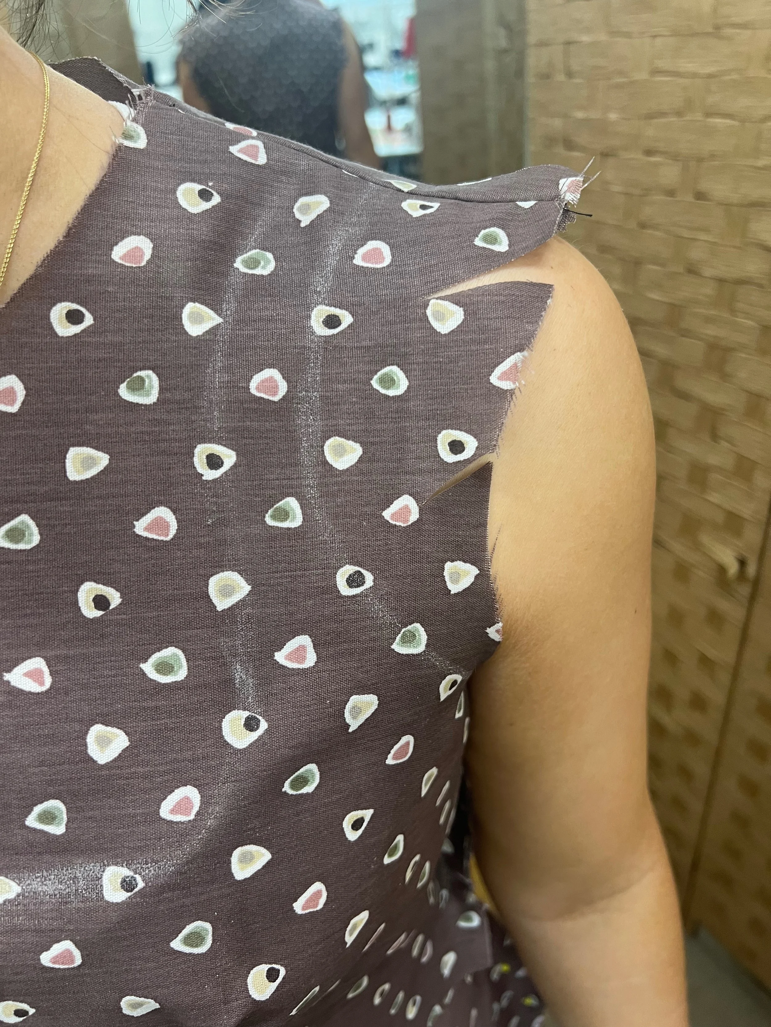 Before completing our final garment we made prototypes out of our actual fabric. We did this so we could see what our designs would look like in the fabric and to see what changes need to be made.