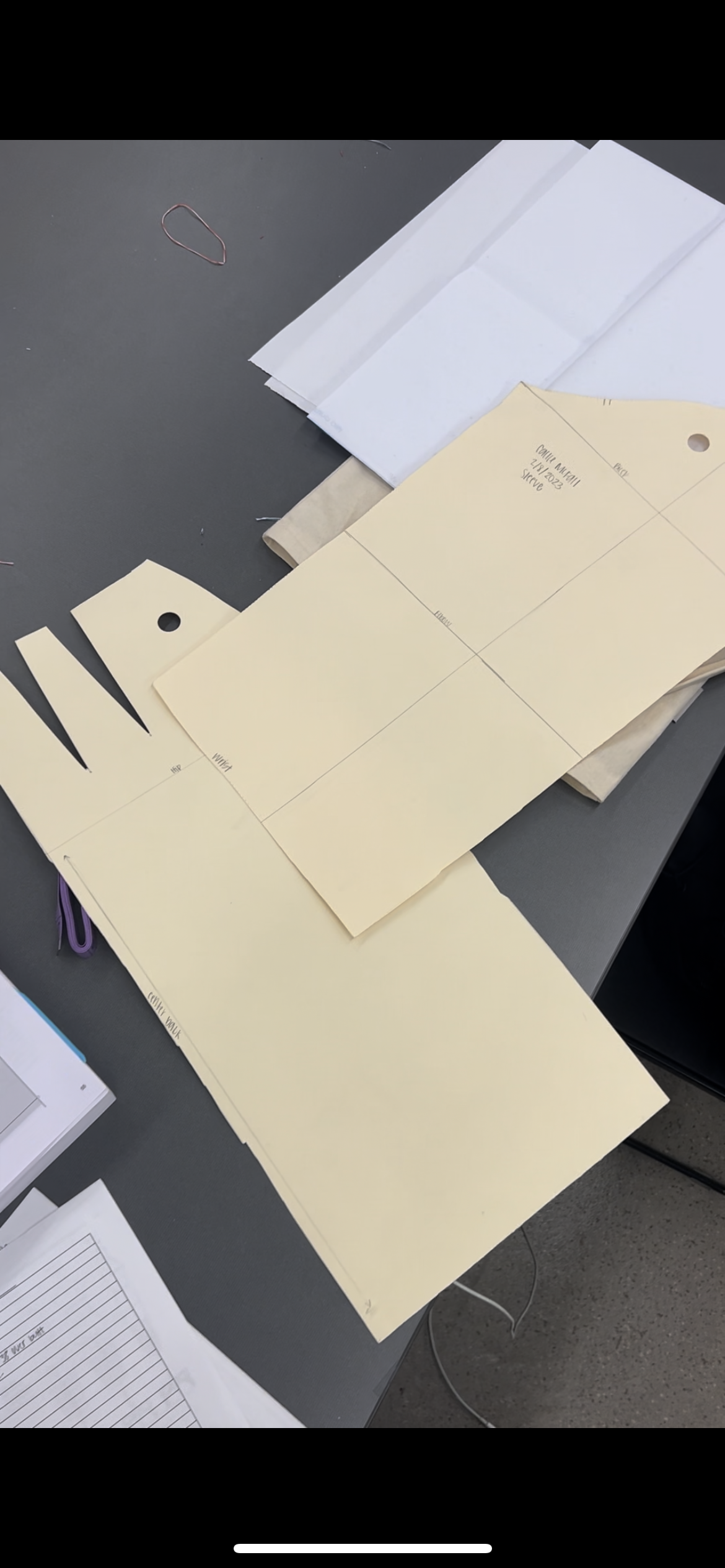 Once we measured our models we had to make patterns based on those measurements. We did this to ensure the fit of the garment. After the fittings we went back to the patterns and made corrections.